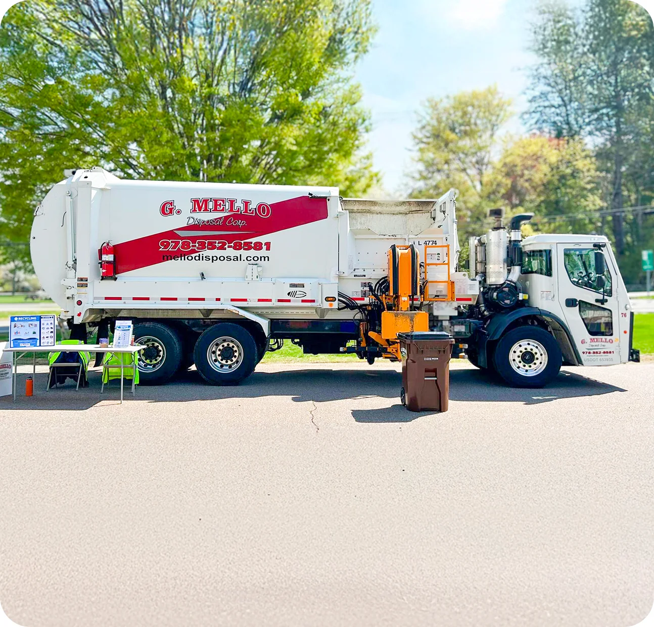 Trash: G Mello (Based a town over in Georgetown) customers are provided a trash barrel and pickup service comes on Monday
